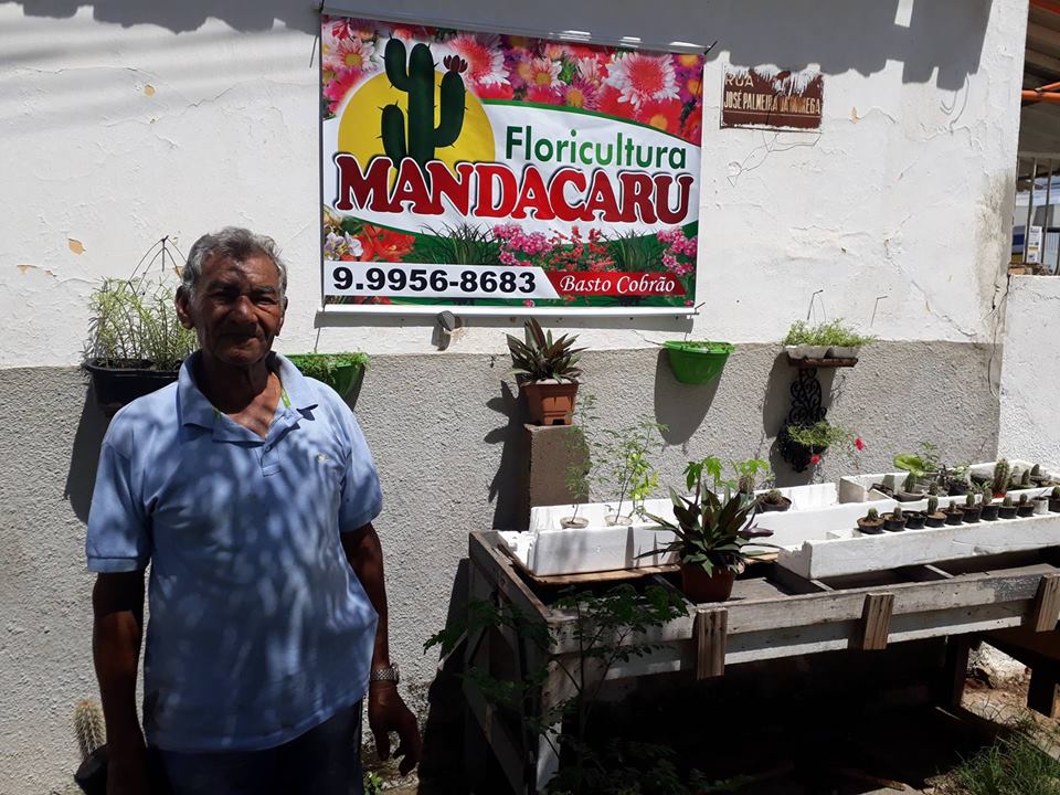 Seu Basto Cobrão trabalha entre pneus e plantas. Ele inovou e sua borracharia passou a ser também floricultura. Ele vende mudas e flores em sua borracharia, inclusive denominou o espaço de “Floricultura Mandacaru”, onde vende mudas de manga, caju, mamão, rosas, cactos, e muitas outras. “Tenho mudas de todos os tipos aqui e custam a partir de cinco reais”, disse ele.