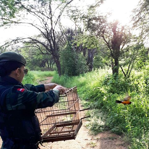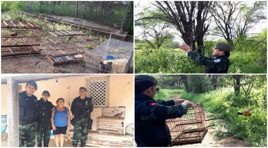 Conforme os agentes, CB Ana, SD Davi e SD Hudson, que realizavam rodas na região com o objetivo de conscietizar os moradores contra crimes relacionados a fauna e a flora, a agricultora Antônia Gomes da Silva, entregou voluntariamente as aves que estavam em casa.