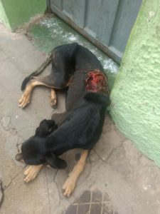 Na tarde de ontem (sexta, 18/05) mais um cachorro de rua foi encontrado em situação deplorável em Patos, dessa vez na Rua da Baixa, no Bairro Santo Antônio.
