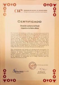 A última ocorrência de febre aftosa no Brasil foi em 2006, no Paraná e em Mato Grosso do Sul, na região de fronteira com o Paraguai. Em 2007, Santa Catarina recebeu o reconhecimento da OIE como livre de febre aftosa sem vacinação. Esse é o próximo status a ser buscado pelo país: gradativamente, retirar a vacinação do rebanho até 2023, para que, até 2026, haja a certificação internacional pela OIE, de país livre de aftosa sem vacinação.