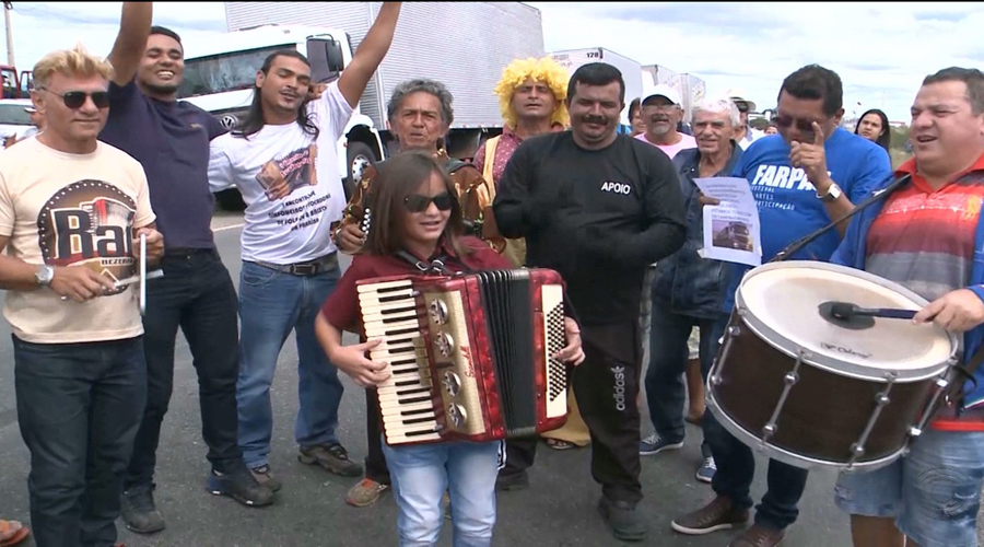 Em meio ao congestionamento e paralisação de caminhoneiros, na BR-230, em Patos, um grupo de músicos que tocam forró resolveu fazer uma apresentação no meio da rodovia. Enquanto o trânsito não fluía, o grupo tocava forró com sanfona, fole de 8 baixos, zabumba e triângulo.