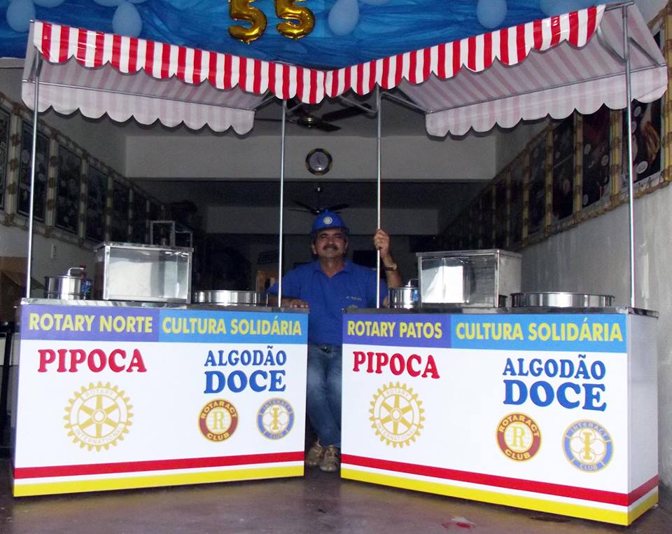 Na manhã desta sexta, 01/06, o Rotary Club de Patos Norte recebeu os jalecos e boinas do Projeto Cultura Solidária. A indumentária é adequada paro o trabalho de fazer a pipoca, o algodão-doce e a distribuição para a comunidade. “Temos duas barraquinhas, uma do Rotary Patos e outra do Rotary Norte e vamos comprar agora a do Rotary Sul. Todos os clubes também já têm Data Show, estão recebendo a tela para que possamos massificar o projeto”, disse ainda Damião