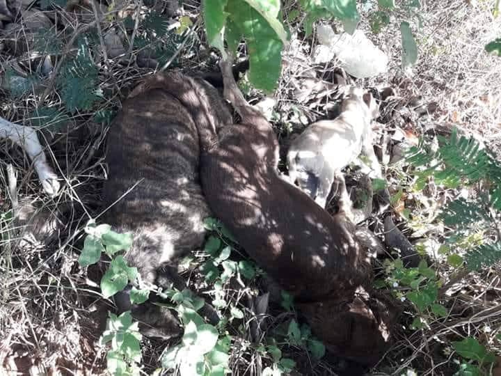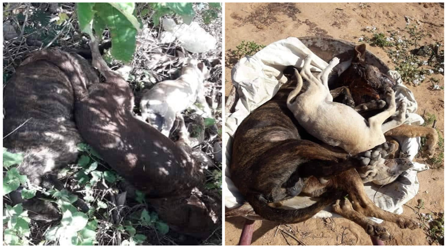 Oito cachorros foram mortos na tarde desta segunda-feira (18/06), na Rua Projetada, no bairro Água Azul, em Teixeira. Todos foram mortos por envenenamento.