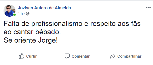 “Falta de profissionalismo e respeito aos fãs ao cantar bêbado. Se oriente Jorge!” – Jozivan Antero de Almeida.