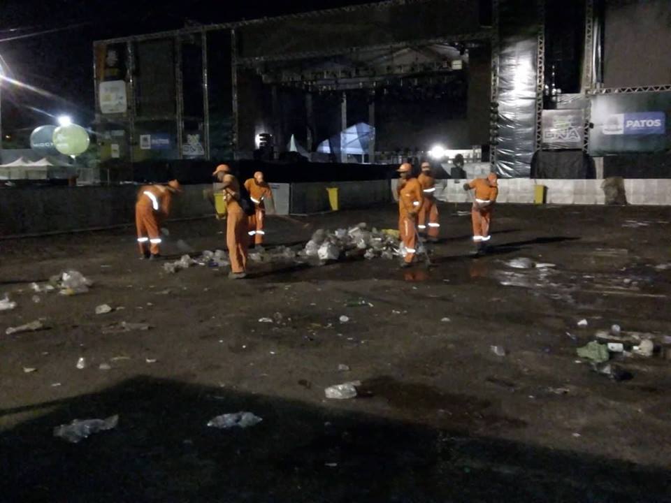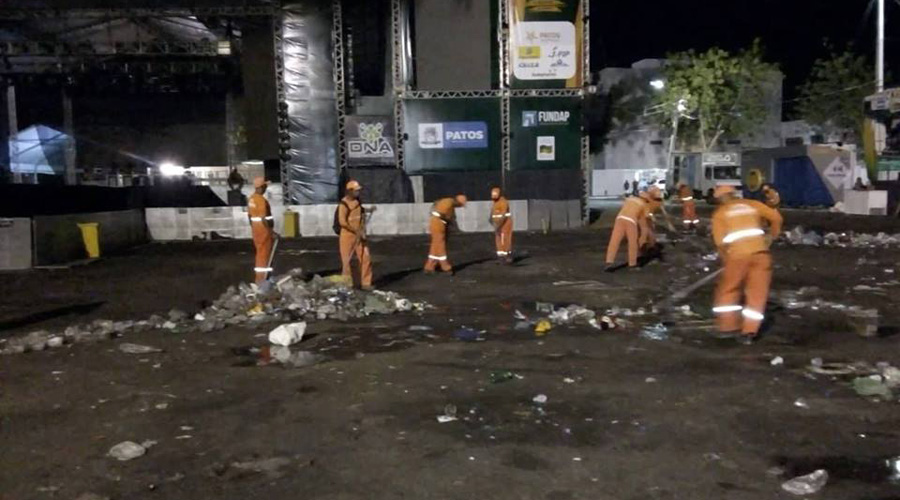 Durante o São João de Patos, as equipes de limpeza da Conserv e da Secretaria Municipal de Serviços Públicos entram em ação, logo após o término da festa, para fazer a limpeza ,remoção do lixo varrição, catação de sacos plásticos, higienização dos banheiros no Terreiro do Forró, Vila São João e ruas adjacentes aos locais de festa.