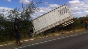 Por volta das 11h30min desta quarta-feira, 01/08, um caminhão baú, com placa de São Paulo, que trafegava no sentido São Mamede/Patos, saiu da pista à altura do KM 321 na BR 230. O condutor Alessandro Márcio de Medeiros, saiu da pista e capotou. Ele não se feriu.