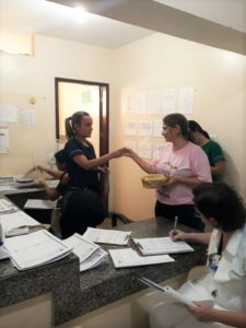 No primeiro dia de atividades da Semana, houve uma abordagem aos funcionários e visitantes da Maternidade com a distribuição de laços dourados. Nesta quinta-feira (2), a nutricionista Silvania Rodrigues ministrou palestras sobre ‘Mitos e verdades sobre o aleitamento materno’. A primeira delas aconteceu pela manhã, na sala de entretenimento da Maternidade, para funcionários, pacientes e visitantes, e à tarde, a mesma palestra foi realizada na UBS Sebastiana Xavier, no bairro de Bivá Olinto, para gestantes daquela localidade atendidas pela Unidade Básica de Saúde.