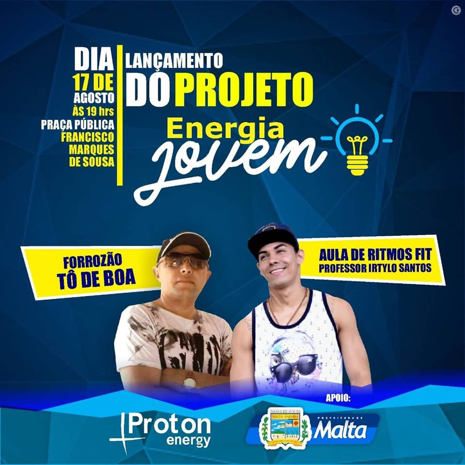 O Projeto Energia Jovem é uma ação social que visa oferecer a população de Malta mais qualidade de vida, através de ações voltadas à educação, cultura, esporte e lazer. Esse projeto nasceu a partir de uma iniciativa da Prefeitura Municipal de Malta em conjunto com a Empresa Proton Energy, empresa responsável pela implantação e construção da Usina de geração de energia solar em Malta, no intuito de minimizar alguns problemas sociais do município. O mesmo foi dividido em algumas etapas, na primeira será com atividades relacionadas ao bem-estar e prática de atividades físicas.