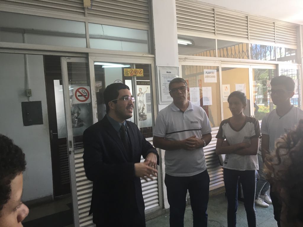 O juiz Bruno Medrado fez uma palestra para os alunos, explicando o que é o Poder Judiciário, como os jurisdicionados podem buscar os seus direitos, o papel do juiz, dos servidores e dos demais órgãos que formam o Sistema de Justiça, a exemplo do Ministério Público, Defensoria Pública e a Ordem dos Advogados do Brasil. Outros temas também foram abordados.