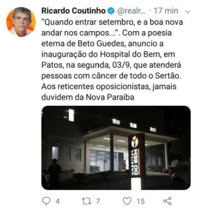 No início do ano, o Governo do Estado, por meio da Secretaria de Estado da Saúde recebeu, por intermédio de duas emendas parlamentares, destinadas pelo deputado federal Hugo Mota, um total de R$ 8.383.739,00 para custeio da Unacon, possibilitando a ativação do serviço, que será referência no tratamento de câncer no Sertão paraibano.