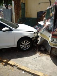 Um motorista perdeu o controle do seu veículo, bateu em quatro carros, atropelou uma idosa e derrubou um muro. Segundo informações do portal maispatos o motorista pode ter tido um mal súbito, por isso o carro ficou desgovernado.