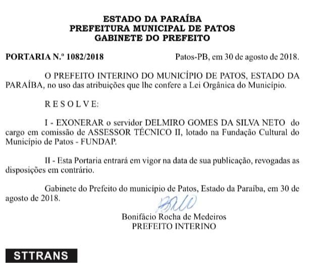 O Diário Oficial do Município de Patos, da última quinta-feira(30), veio repleto de exonerações de comissionados da Prefeitura que faziam parte do 1º e 2º escalão. O prefeito interino Bonifácio Rocha promoveu diversas mexidas em cargos que já haviam sido modificados por ele próprio.
