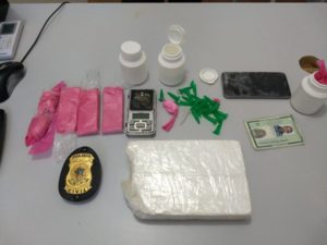 Ewerton Gomes de Almeida, vulgo “Totinha”, sendo incurso no crime de Tráfico Ilícito de Entorpecentes, com quem foi apreendido um “tijolo” de mais de 1kg de substância de cor branca semelhante à cocaína, um recipiente com 21 pinos de cor incolor destinados à guarnição de cocaína, vários sacos plásticos de picolé, um recipiente branco contendo um pó branco similar à cocaína, uma balança de precisão e um aparelho celular marca LG;