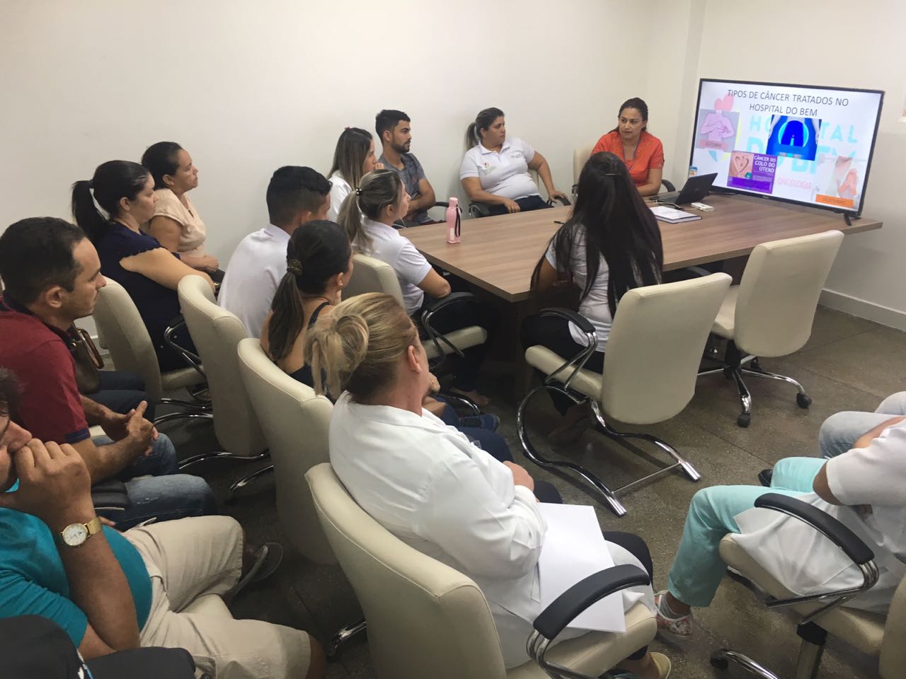 Participaram da capacitação, profissionais de vários setores do hospital, desde maqueiros, porteiros, recepcionistas e enfermeiros. A instrutora foi a coordenadora do setor de Enfermagem do Hospital, que é especialista em oncologia e Cuidados Paliativos, Aretuza Delfino. “Este treinamento foi importante porque, dentro de algumas grades curriculares, não se aborda oncologia. Vimos questões desde o fluxograma do paciente, ou seja, como ele é atendido pelo nosso serviço, passando pela parte de sistematização até chegarmos às especificidades da oncologia, com abordagens sobre a doença, como ela se desenvolve e quais as situações que essas equipes vão se deparar no decorrer das admissões e dos tratamentos”, disse.