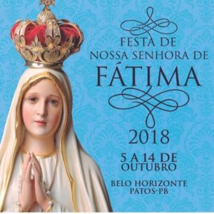Começa na próxima sexta-feira, 5, a tradicional Festa de Nossa Senhora de Fátima, padroeira do bairro Belo Horizonte, na zona norte de Patos, e de toda paróquia que leva seu nome. Para marcar a abertura dos festejos, uma procissão com as imagens dos santos pastorzinhos, Francisco e Jacinta e da beata Lúcia, videntes das aparições da Virgem Maria em 1917, sairá da Capela São José, no bairro Novo Horizonte até a matriz onde acontecerá o hasteamento da bandeira e missa de abertura da programação religiosa. Os festejos se estendem até o dia 14 de outubro com missas, novenas e quermesses na lateral da igreja todas as noites com música ao vivo.