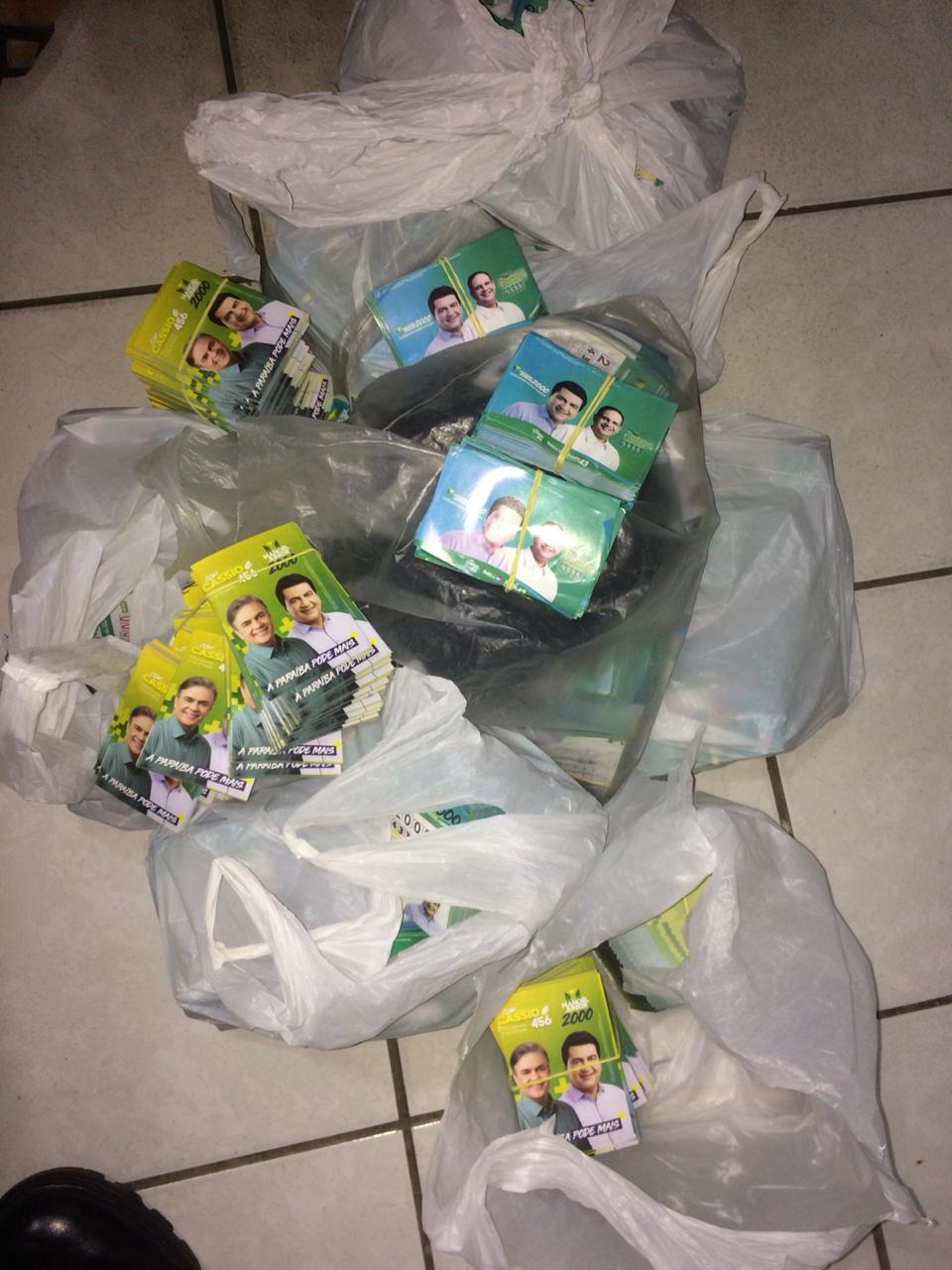 A Polícia Militar da Paraíba apreendeu na madrugada desta sexta-feira (05) R$ 11 mil em dinheiro, sacos com santinhos e adesivos de candidatos, além de folhas de cheques e listas com nomes e seus contatos telefônicos. O homem flagrado com o material foi apresentado na Polícia Federal, em Patos, de acordo com levantamento do Click PB.