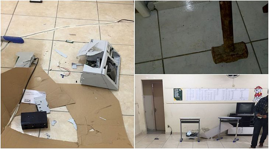 Uma urna eletrônica foi quebrada por um eleitor na Escola Maurício de Souza Patrício, no bairro Graziela, em Morro da Fumaça, em Santa Catarina. O autor do crime usou uma marreta para destruir o equipamento.