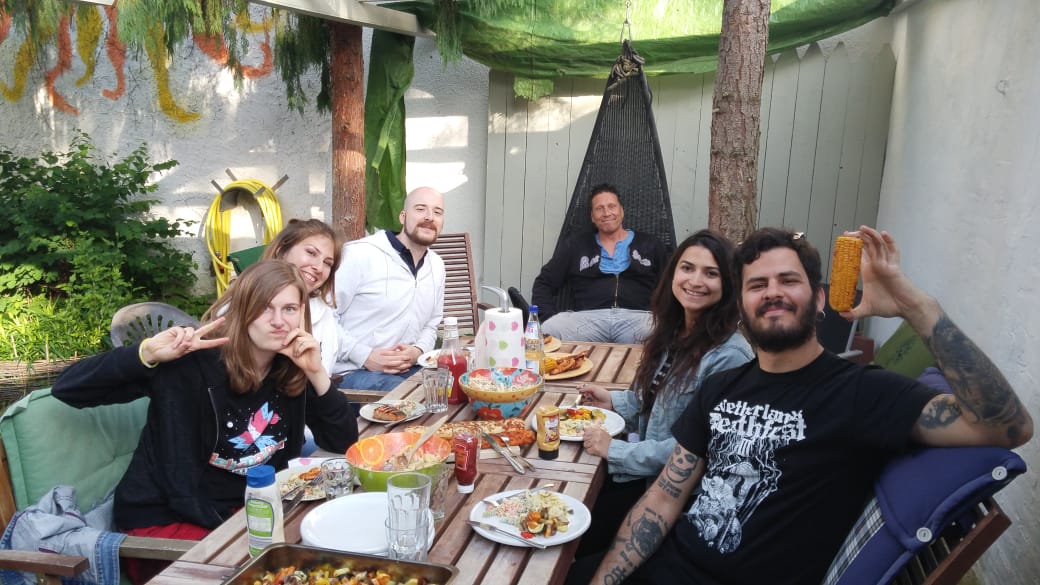 O jovem fez muitos amigos em Frankfurt e disse que sentiu bastante ter que deixar esses amigos para voltar à sua terra: “Fiz ótimos amigos na Alemanha e quem tem amigos tem tudo. É melhor ter amigos na praça do que dinheiro no bolso. Eles ficaram tristes com a minha decisão de voltar, mas entenderam quando eu falei que tava com saudades de beber água de coco direto do coco”, brinca o músico patoense, que de fato é conhecido pela facilidade com que faz amigos por onde anda.