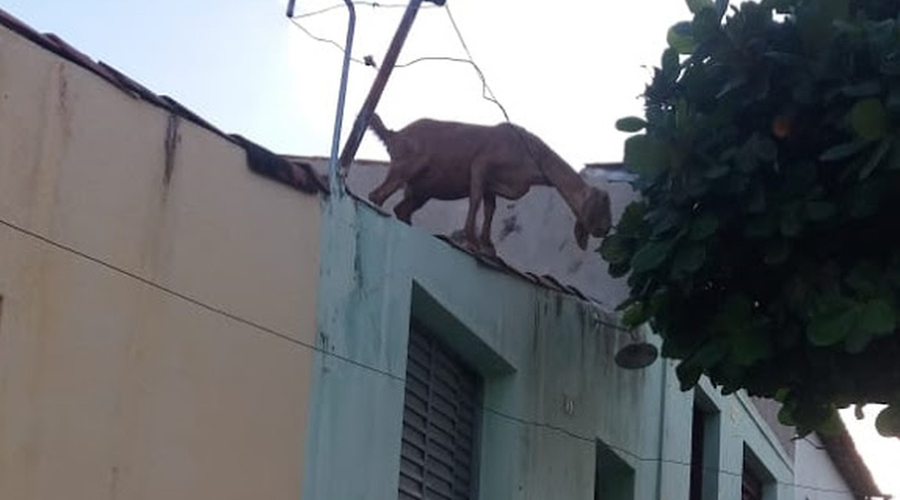 Uma cabra chamou a atenção de moradores do bairro da Esperança, em Cajazeiras, nesta segunda-feira (19). O animal escolheu um local inusitado para passear durante a tarde e subiu nos telhados de duas casas. Ela só conseguiu descer com a ajuda de bombeiros.