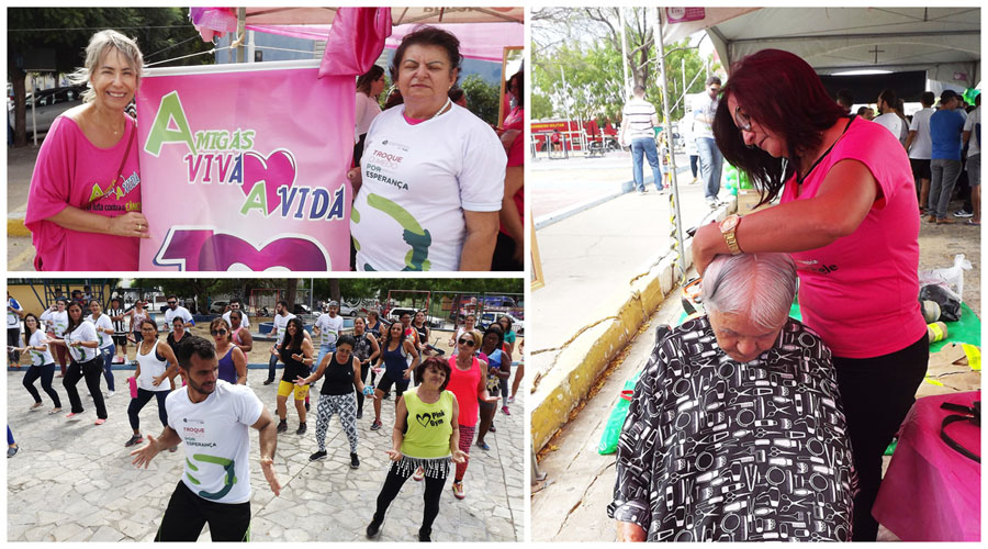 A ação, cujo slogan foi ‘Troque o Medo por Esperança”, foi realizada em Patos na Praça Nossa Senhora de Fátima. Entre às 8h e o meio dia, a população pôde fazer testes de glicemia, aferir a pressão arterial, tirar dúvidas sobre câncer, receber dicas de alimentação saudável, participar de um aulão de Zumba com o professor Alberto Freitas, cortar o cabelo com a cabelereira Silvania Simone, conhecer um pouco mais sobre o trabalho da Casa de Apoio ‘Amigas Viva a Vida’ e os homens, por causa do Novembro Azul, fizeram consultas com o cirurgião oncológico, Wostenildo Crispim. Houve ainda a distribuição de frutas e sucos durante todo o evento. O Corpo de Bombeiros também participou da ação com a exposição de equipamentos de socorro e salvamento.