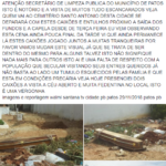 O repórter Walmi Santana, da TV Cidade, esteve recentemente no Cemitério Santo Antônio, no bairro Monte Castelo, em Patos e presenciou uma situação revoltante e desrespeitosa: caixões jogados ao ar livre, muita fedentina e lixo nos fundos e na capela do local Ele acompanha a situação desde a terça-feira, 27/11, e chama atenção da Secretaria Municipal de Serviços Públicos de Patos, para que as providências sejam tomadas.