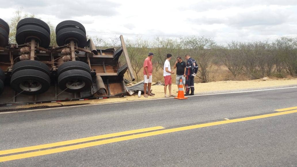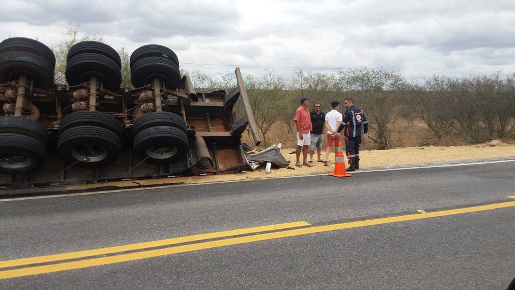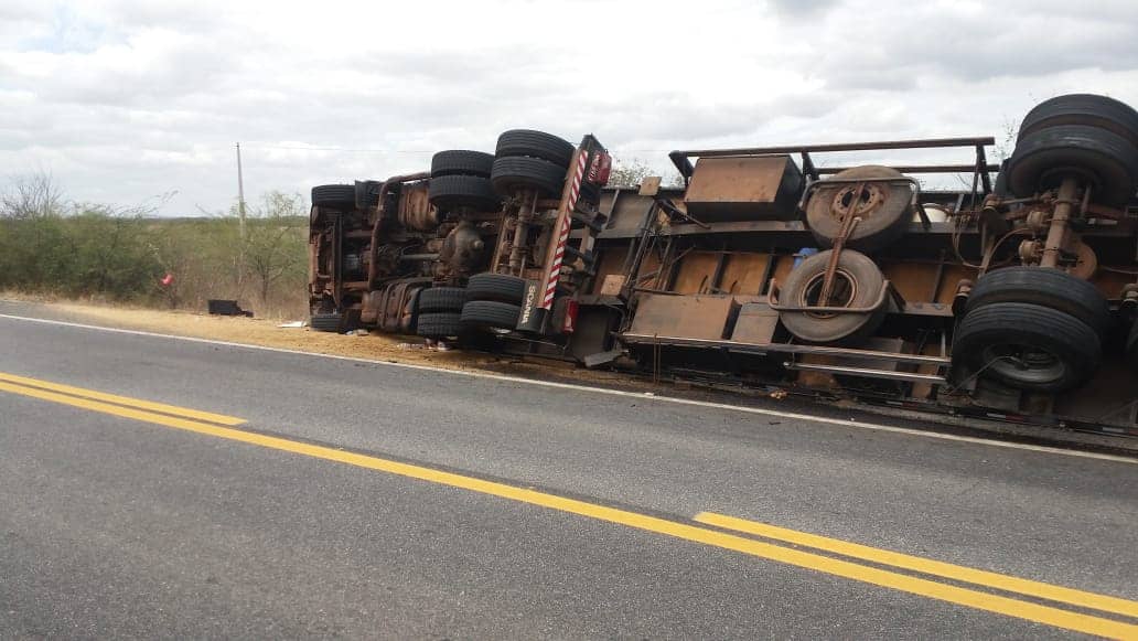 Na madrugada desta segunda-feira, 03, uma carreta carregada de cevada tombou na BR 230, entre os municípios de Juazeirinho e Soledade.