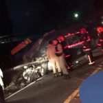 Segundo as primeiras informações o Celta colidiu com um jumento na pista e capotou. Após a capotagem foi atingido lateralmente por um caminhão e por três motos que vinham logo atrás do Celta. Daqui a pouco traremos informações mais detalhadas de como o acidente se deu.