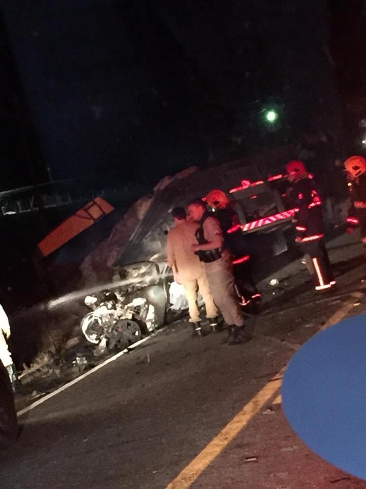 Segundo as primeiras informações o Celta colidiu com um jumento na pista e capotou. Após a capotagem foi atingido lateralmente por um caminhão e por três motos que vinham logo atrás do Celta. Daqui a pouco traremos informações mais detalhadas de como o acidente se deu.