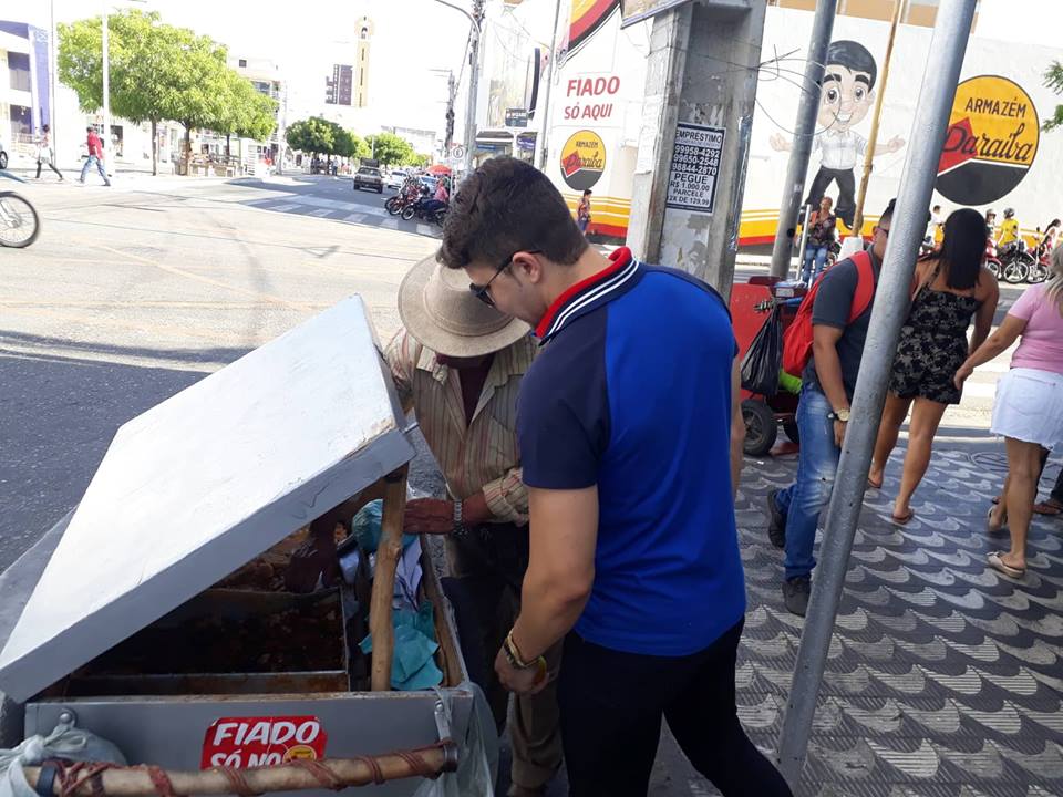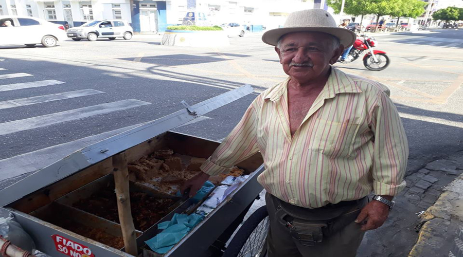 O senhor Afonso Honório de Queiroga tem 73 anos e há 25 anos vende cocadas na lateral do Edifício Estevam, no centro de Patos.