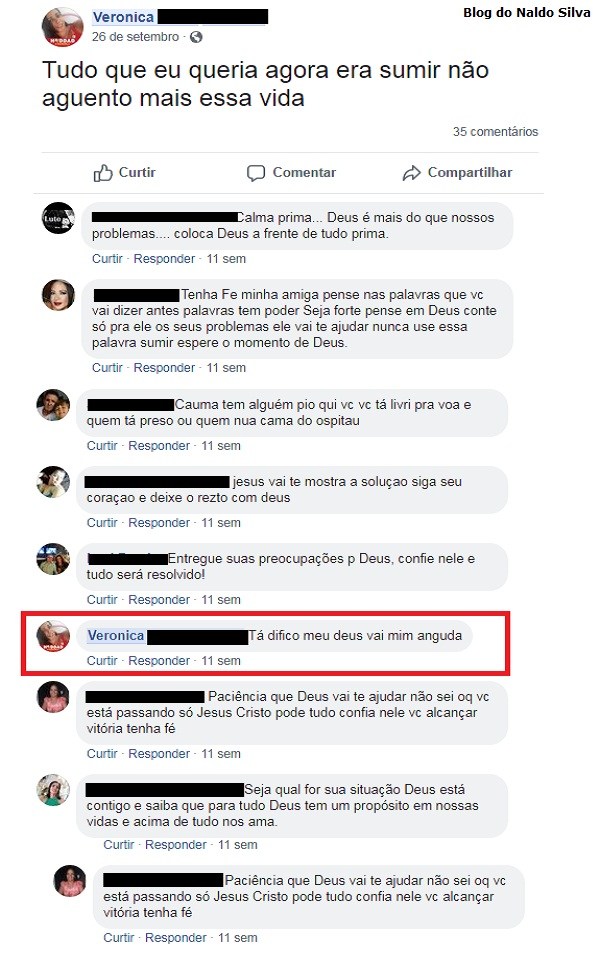 A publicação foi seguida por dezenas de comentários, dando-lhe força e alguns questionando o motivo de tal exposição, sem resposta clara por parte de Verônica, que apenas afirmou que “Tá difícil, meu Deus vai me ajudar”.