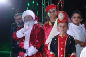 Ao som da musicalidade do saxofonista Bruno Sax, a noite de celebrações foi aberta com um desfile das atrações da noite, dentre elas as crianças do Curso de Teatro Infantil da FUNDAP, os grupos dos Serviços de Convivência dos CRAS, e os jovens do Projeto Prima. Em seguida o Bom Velhinho foi recepcionado com muita alegria por todos que ali estavam.