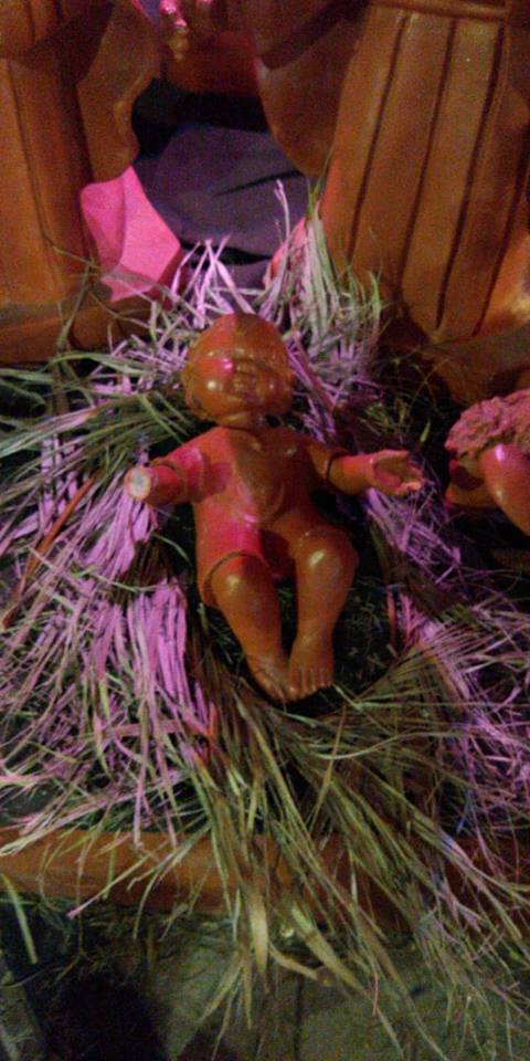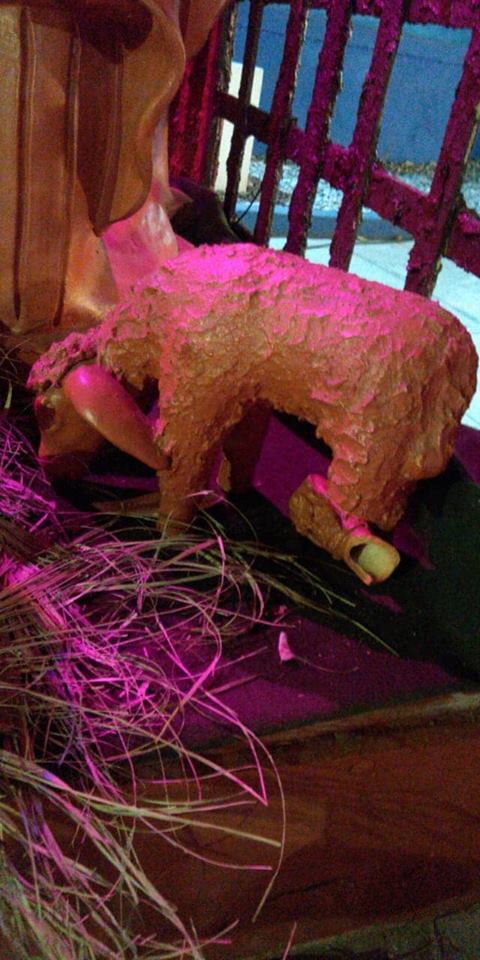 Os vândalos quebraram a pata e uma das pernas da imagem do borrego, quebraram a mão da imagem do Menino Jesus e furtaram um pano que envolvia a imagem.