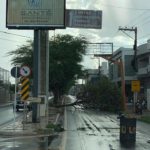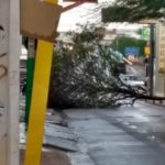 A pancada de chuva que caiu em Patos por volta das 15h30min não foi suficiente para afugentar o calor, mas derrubou uma algaroba na Rua Pedro Firmino, no Bairro da Brasília, em Patos, próximo à loja Casa Pronta.