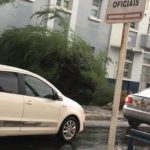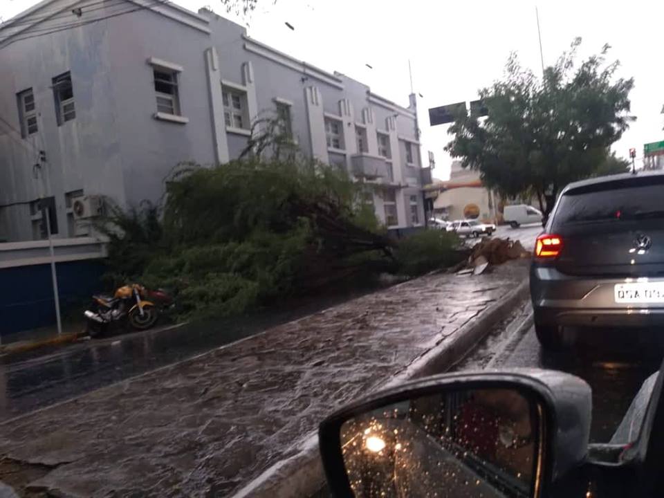 Uma algaroba na Rua Pedro Firmino, ao lado da Prefeitura, desabou.