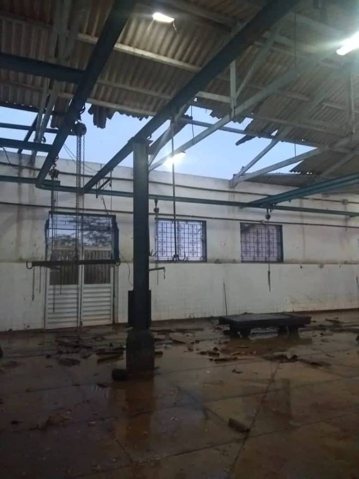 Parte do telhado do Matadouro Municipal desabou.