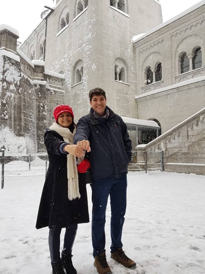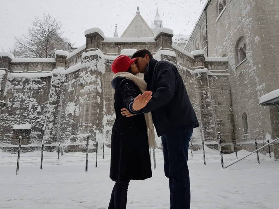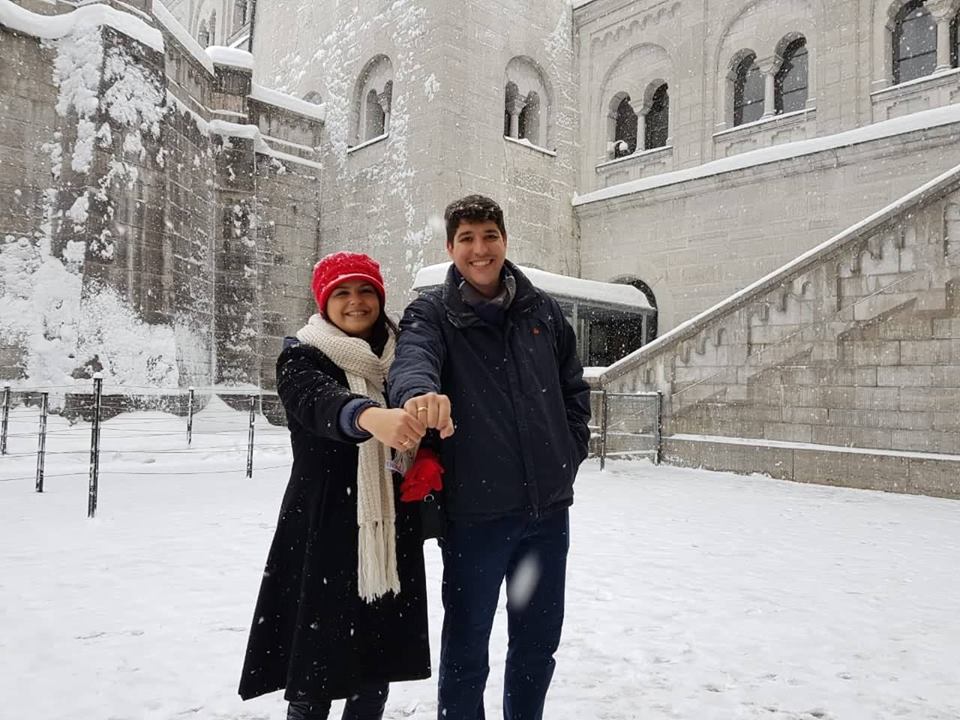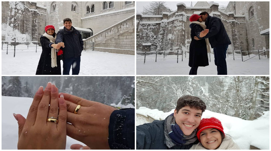 O jovem Marcelo é descendente de alemão, mora em João Pessoa e é formado em Engenharia Mecânica. Os dois já namoram há algum tempo e nesta quinta, 10, o rapaz aproveitou o cenário de beleza germânica para pedir a mão da moça em casamento. Ela disse “sim”, e os dois, já de alianças nos dedos, posaram para inúmeras fotos num cenário de muita beleza. Tudo veio a calhar, pois no local eles conheceram um brasileiro de nome Rodrigo Costa, que mora nos Estados Unidos, estava fazendo turismo no local, é fotógrafo profissional, e foi ele quem fotografou o casal neste momento tão marcante.