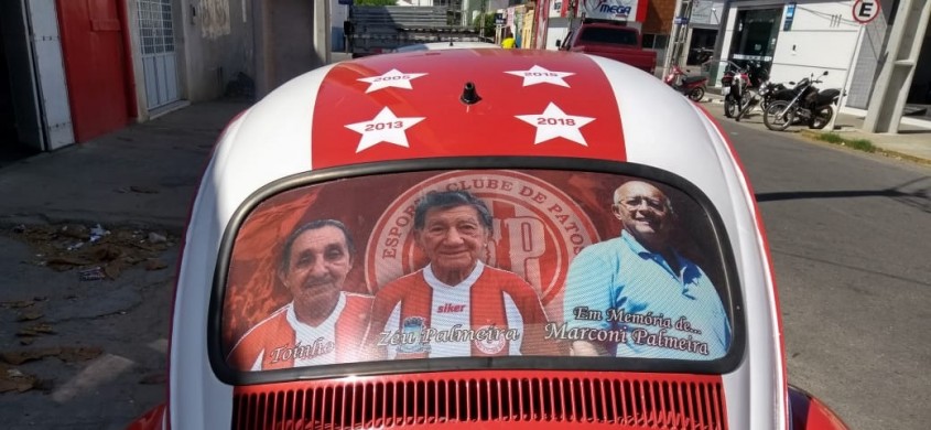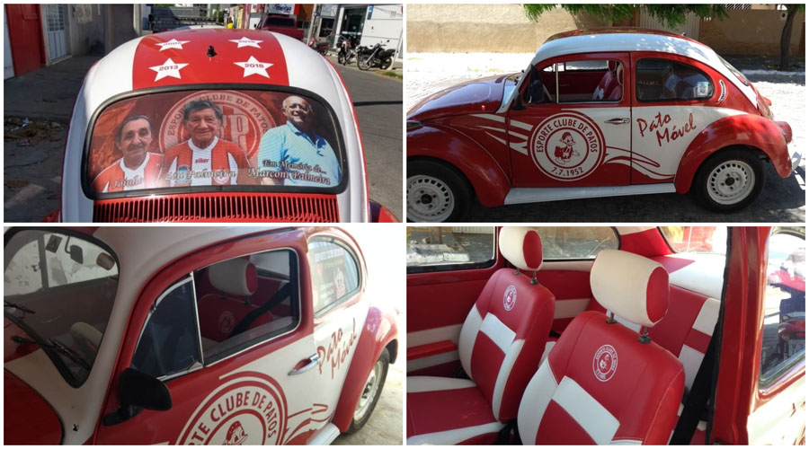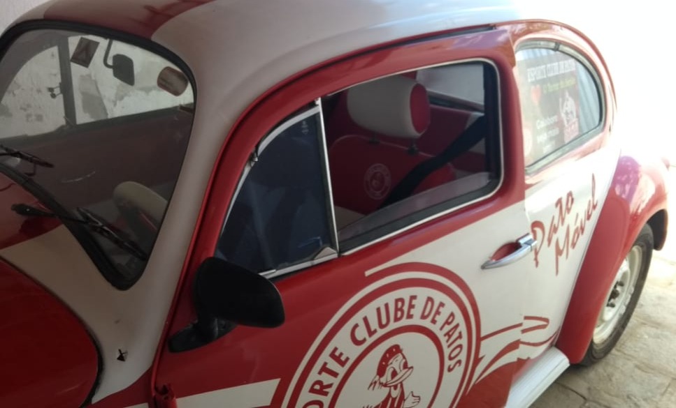 Estevão é daqueles torcedores de carteirinha, tanto que, com a ajuda de sugestões de amigos torcedores e do pai, criou o “Pato Móvel”. Um fusquinha, ano 1974, totalmente estilizado. Com adesivagem nas cores do time patoense, revestimento interno com o escudo do Esporte e, claro, a elegância dos carros de época.