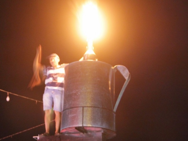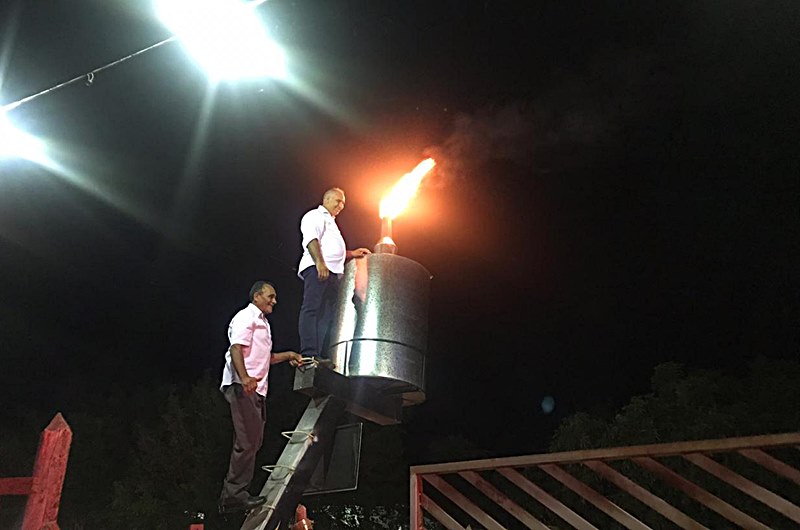 O candeeiro foi aceso às 18h00 e foram necessários 200 litros de combustível e 20 kg de algodão para acendê-lo. A maior preocupação de profissionais de segurança era que houvesse algum incêndio durante a queimação do pavio, tendo em vista a quantidade usada, mas tudo ocorreu de acordo com o previsto pelo criador Antônio Modesto, que afirmou estar muito feliz com os resultados. “Estou muito alegre e satisfeito por ter dado tudo certo e com tudo o que aconteceu hoje aqui. Só agradeço a Deus por esse momento”, disse o inventor.