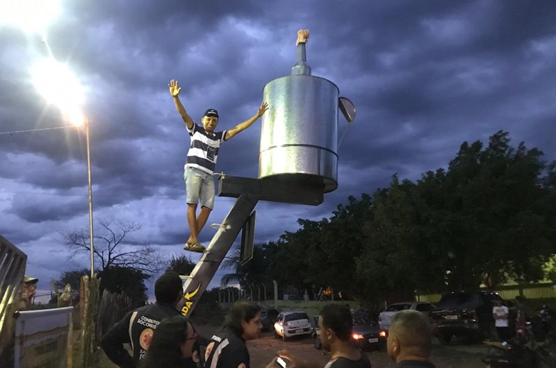 O inventor do objeto gigante é o itaporanguense Antônio Modesto da Silva, que tem um sítio chamado Jenipapo, local onde aconteceu o evento. A ideia veio após faltar energia geral na cidade onde ele reside, foi quando ele resolveu fazer uma criação que servisse para iluminar quando isso voltasse a acontecer. O sertanejo já havia projetado pequenos candeeiros para sua família no sítio onde ele morava, quando faltava luz, mas nada comparado a esse. Modesto trabalha como taxista no município itaporanguense e afirmou que deseja que sua criação vá para o Guinness Book .