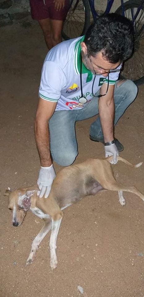 O médico veterinário Dilermando Simões esteve no local e realizou os primeiros procedimentos de socorro e agora o animal está nas mãos do Adota Patos.