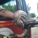 Na tarde desta quinta-feira, 17, a dona de casa Silmara Moreira, moradora do conjunto Santa Clara, em Patos, varria sua casa quando de repente, ao se abaixar para varrer debaixo da cama, se assustou com a presença de uma jiboia.