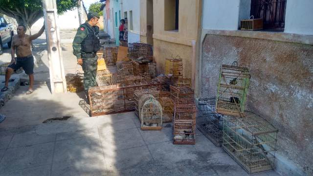 Policiais da 3ª CPAmb (Companhia de Polícia Ambiental) realizaram, nesta quinta-feira, dia 17, a maior apreensão de aves silvestres no Vale do Piancó.