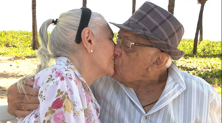 Suzana de Moura Melo e Celso Augusto de França moram em João Pessoa e estão juntos há 64 anos. Desde que se conheceram, ainda na adolescência, o casal nunca mais soltou as mãos. “A gente passa o dia namorando, porque fica nós dois em casa, ai a gente passa o dia namorando”, confessou dona Suzana, que hoje está com 85 anos. “O namoro continua, se tivesse uma chancezinha, tinha outro menino”, disse seu Celso.