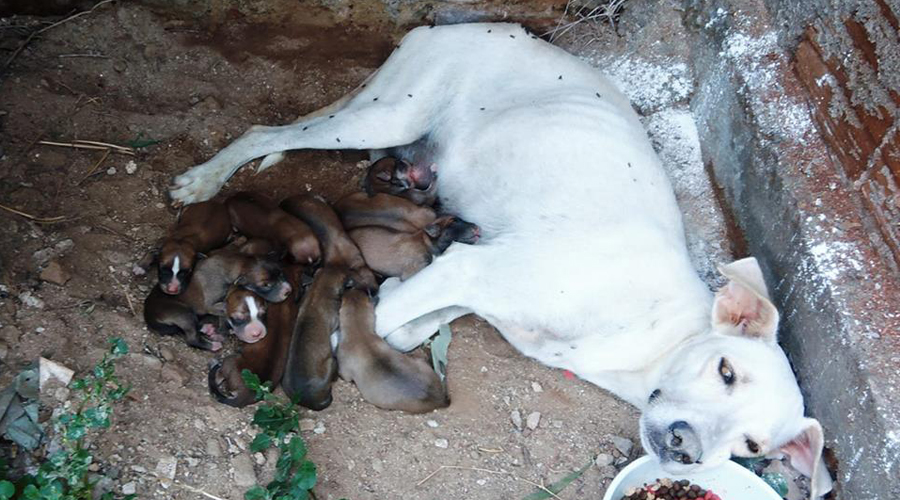 Os moradores encontraram um local onde ela pudesse ficar protegida do sol e da chuva, mas o local, segundo o cabo Rogério Sena, não é adequado. “Foi improvisado um local, colocaram uma porta escorada na parede para que ela e seus filhotes pudessem ficar protegidos, mas o local tem muitas formigas. Dois filhotes já morreram. Os vizinhos estão ajudando, colocando água e ração no local, mas estão procurando quem possa adotá-los”, disse o militar.