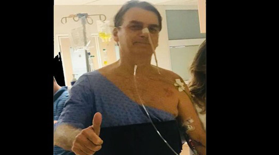 O Palácio do Planalto divulgou na tarde desta quinta uma foto de Bolsonaro fazendo caminhada no hospital com a sonda nasogástrica e fazendo sinal de positivo.