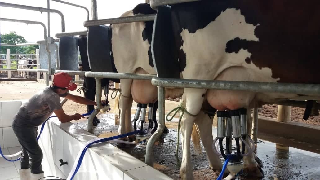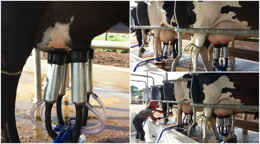Na manhã de ontem (quarta-feira, 06), o extensionista da EMPAER (Empresa Paraibana de Pesquisa, Extensão Rural e Regularização Fundiária) Zildo Vicente esteve acompanhando o trabalho de ordenha mecanizada na Fazenda Lagoa Seca, no município de Cajazeirinhas, na região de Pombal. “Nessa fazenda tem a atividade da bovinocultura de leite, com a sala de ordenha canalizada”, disse Zildo.