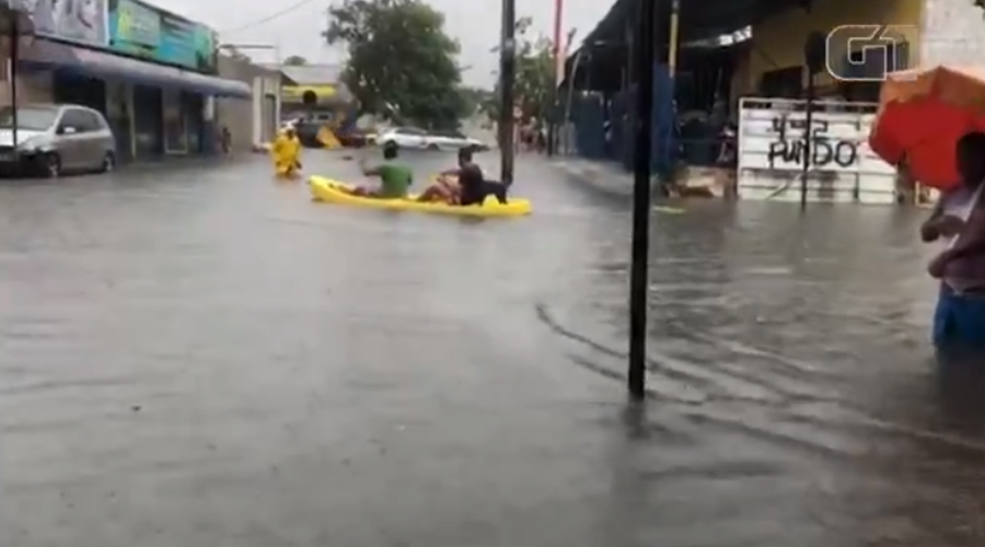 No bairro da Torre, dois homens usaram um caiaque para “passear” pela água que acumulou na rua. Um vídeo mostra o momento que até um cachorro pega carona no passeio. Na Avenida Rio Grande do Sul, no bairro dos Estado, um carro foi “engolido” por uma cratera.