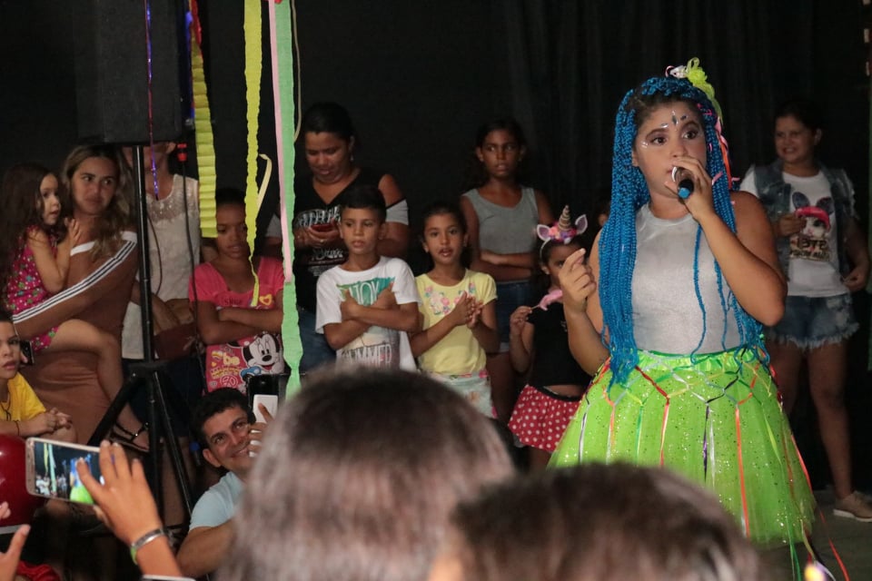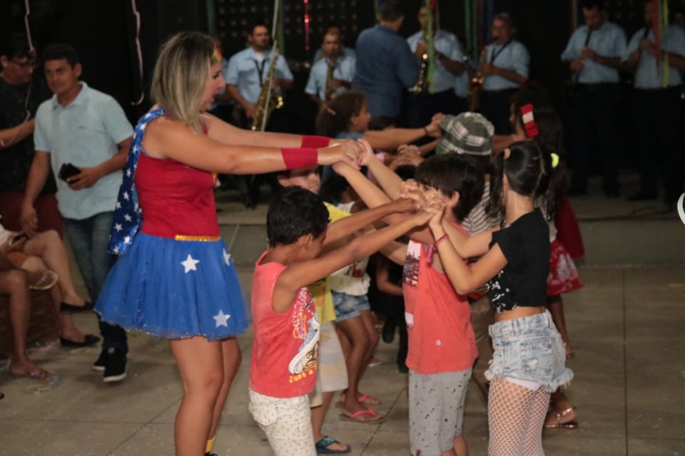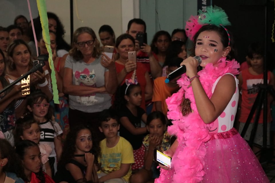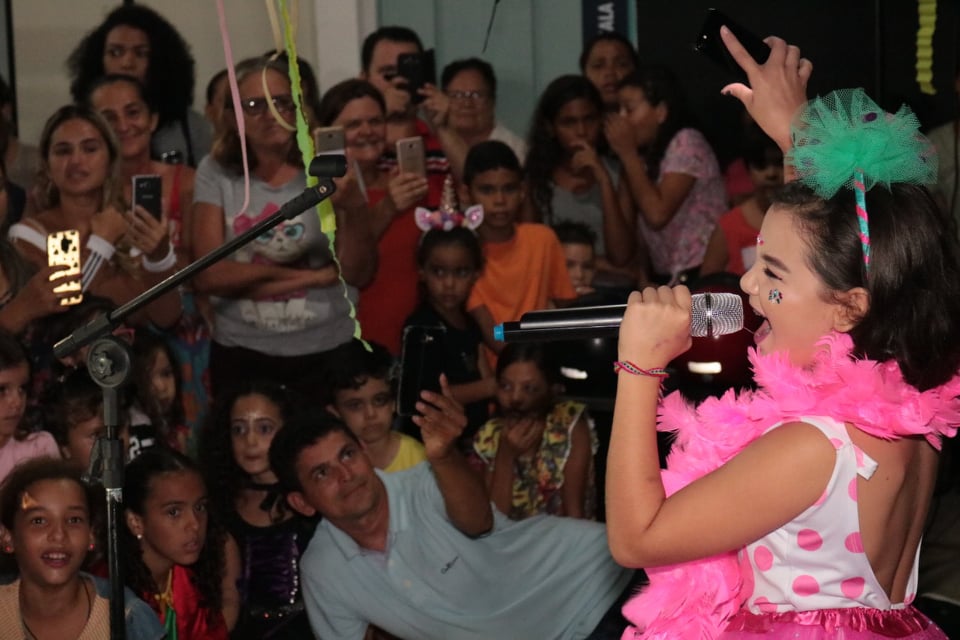 As estrelas patoenses que estão participando do Programa The Voice Kids 2019, Lívia Valéria e Helô Wanderley foram as grandes atrações da noite, embalando o ritmo da criançada. A Tia Aline também agitou a festa com muitas brincadeiras e deliciosas guloseimas, e ainda houve a participação da Filarmônica Municipal 26 de Julho que trouxe as tradicionais marchinhas carnavalescas. “O baile do carnaval da FUNDAP foi um momento de celebração das crianças que participam do nosso Programa de Formação Artística e foi aberto a toda a comunidade”, destacou o presidente da FUNDAP, Deleon Souto.
