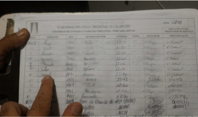 Segundo o controle de entrada e saída de visitantes do edifício, Vinícius Batista Serra, de 27 anos, deu nome de Felipe para entrar no prédio.
