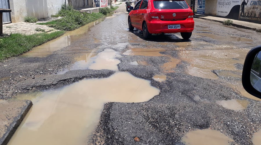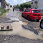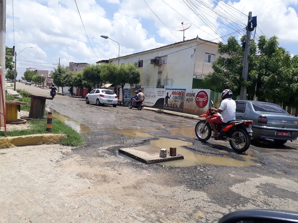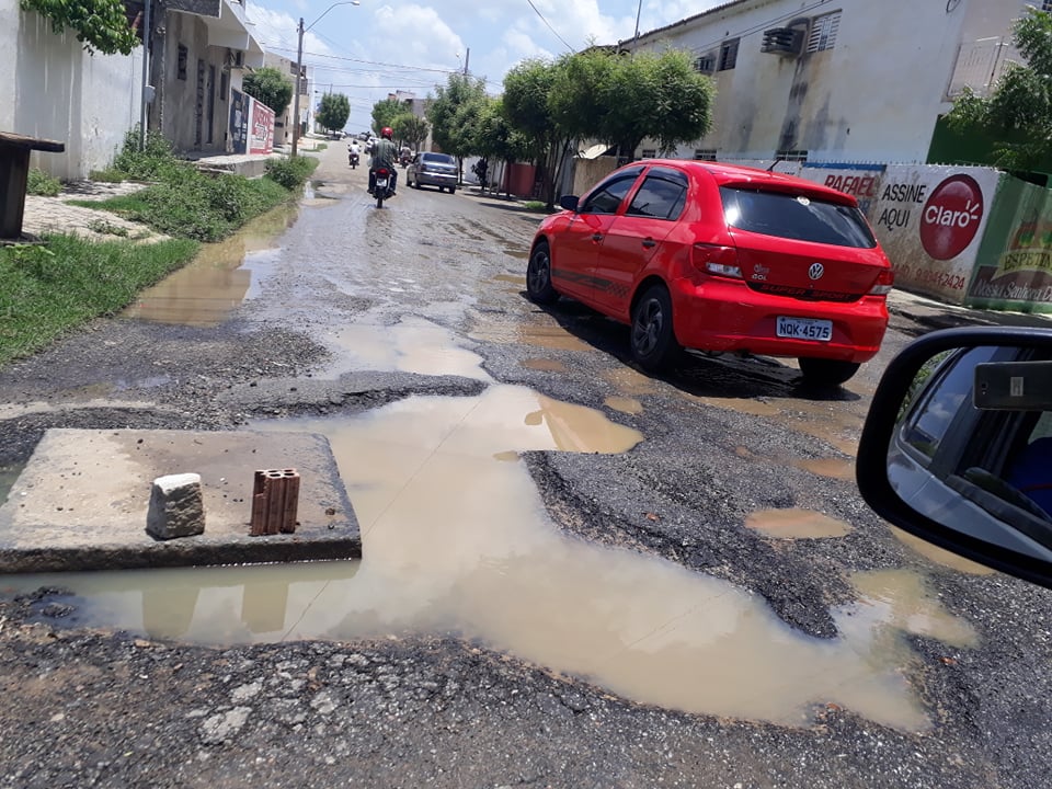 Com as chuvas dos últimos dias em Patos o asfalto da Rua Felipe Camarão, no Bairro Santo Antônio, tem um trecho tomado de buracos, gerando muitos problemas no trânsito.